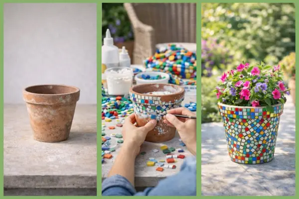 Ein alter Blumentopf oder Kübel kann mit ein wenig Farbe, Mosaiksteinen oder Naturmaterialien in einen echten Hingucker für Terrasse oder Garten verwandelt werden. So wird aus einem einfachen Behälter ein dekoratives Upcycling-Highlight, das zugleich nützlich ist.